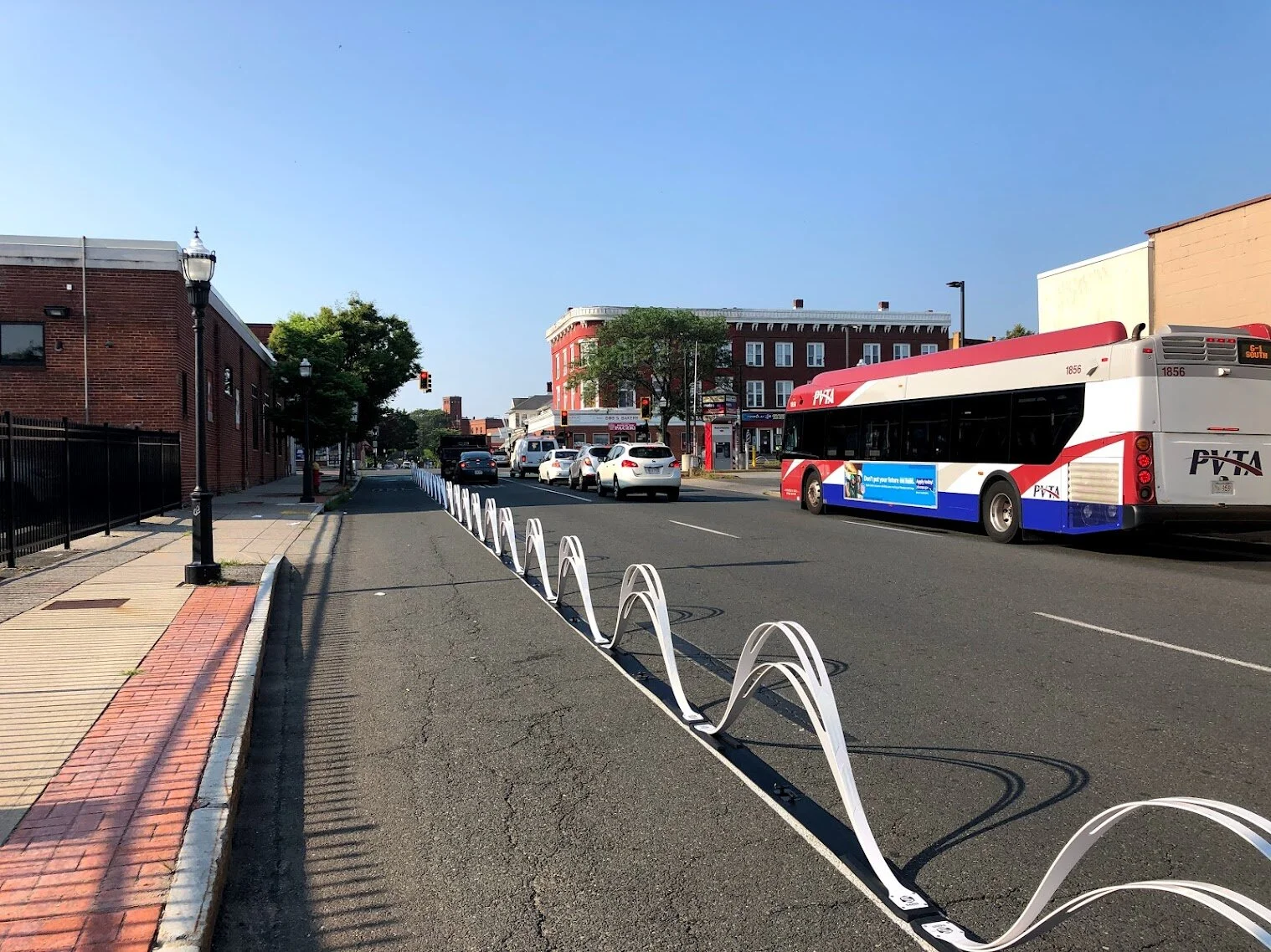 In June of 2021, Chicopee installed its first protected on-street mixed-use path throughout the Chicopee Center neighborhood. These mixed-use lanes will collectively be referred to as the ‘Center Loop’. The Center Loop is a temporary pilot project that aims to provide residents and visitors with increased connectivity to a variety of services and amenities. The streets comprising the route are heavily trafficked and include many popular businesses. In July of 2021, Saris Wave Delineators will be placed along the route completing this project.