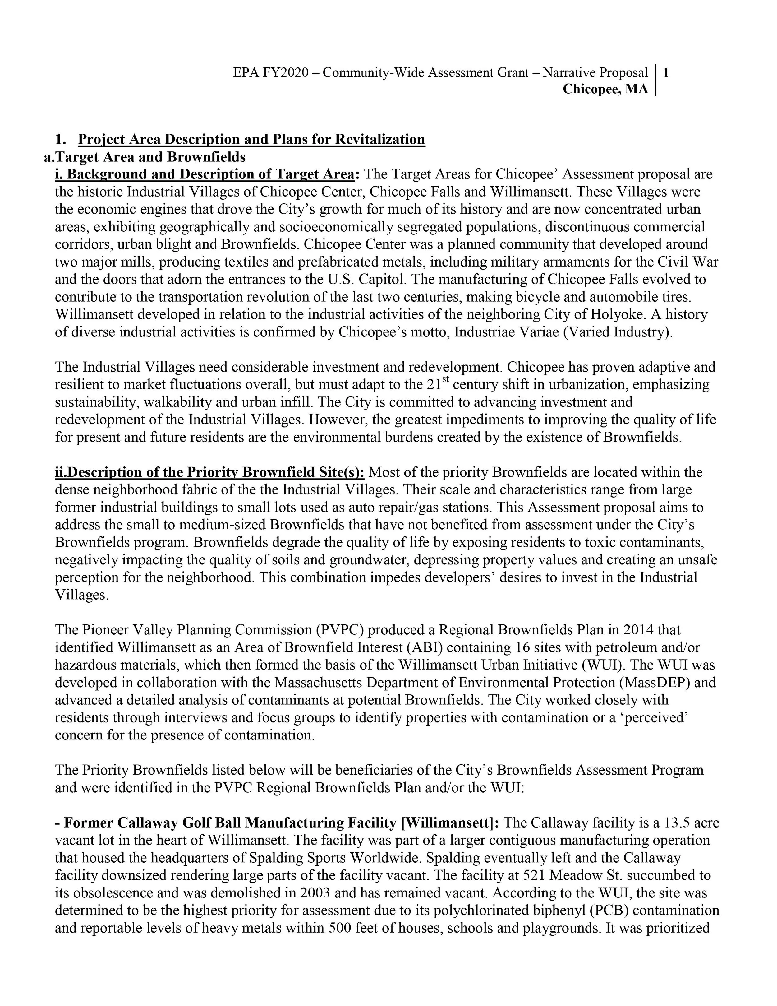 Through this grant, Chicopee was awarded a $300,000 Assessment Grant to conduct environmental site assessments, develop cleanup plans, support reuse planning and community outreach activities, and develop an area-wide plan for the Willimansett neighborhood.